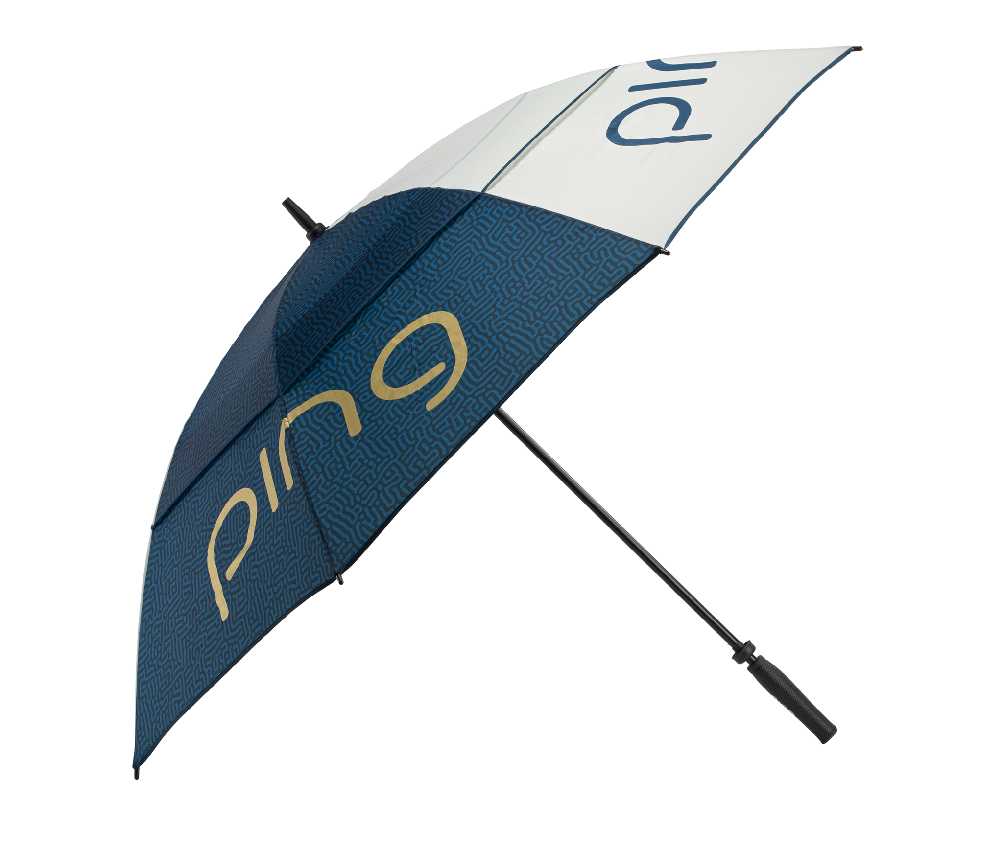 Le parapluie de golf PING pour femme séduit en bleu marine et or a coordonner avec les clubs et accessoires pour femme G Le3. Ce parapluie de 62" se déploie rapidement pour garder la pluie a distance ou vous protéger du soleil brulant. Il reste stable au vent avec un double auvent qui permet la circulation de l'air, assisté par une poignée ergonomique de plus petit diametre qui vous permet de garder une prise sure d'une seule main. Tissu imperméable de 62".