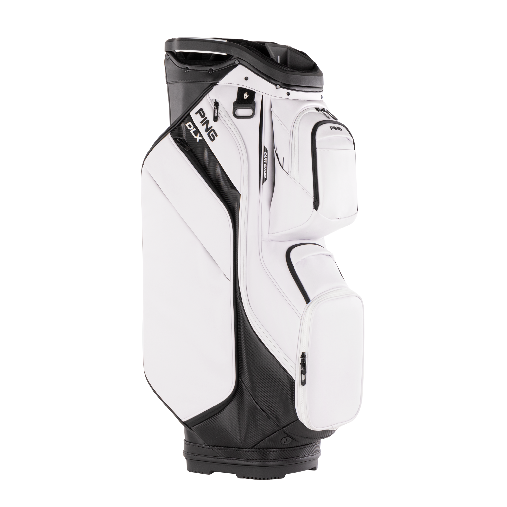 Le nouveau DLX sera votre MVP si vous etes a la recherche d'un sac de chariot polyvalent et entierement équipé, qui offre une grande efficacité de stockage et des attributs pratiques. Les deux poches pour objets de valeur, les pochettes a chaussures déployables et les poches magnétiques supérieures et inférieures font partie des 15 poches au total. Nous avons agrandi le puits de putter dans le haut a 15 voies redessiné. Le DLX est fabriqué en cuir vinyle souple, durable et facile a nettoyer.