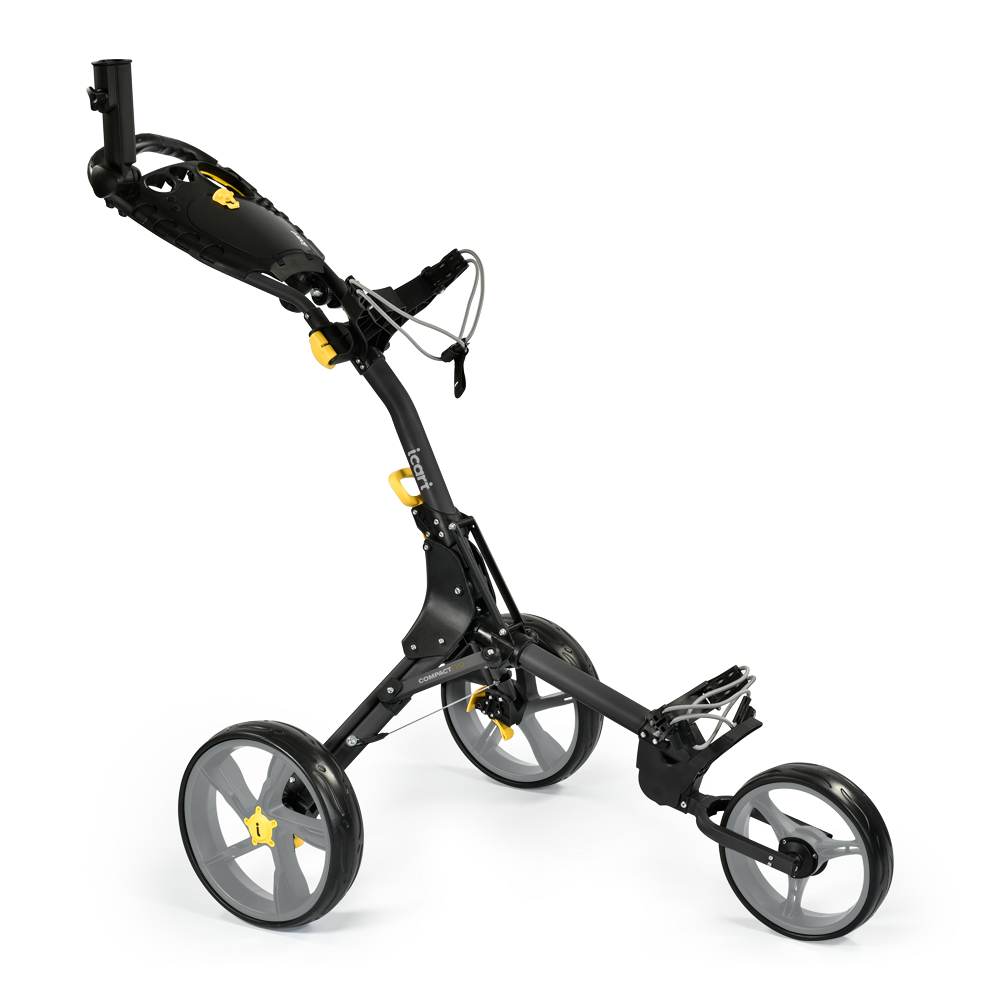 The iCart Evo comes with a drinks holder, multi feature soft touch handle and scorecard holder, quick release wheels, strong adjustable bag straps, easy to use foot brake and extensive parts back up. An umbrella holder is included using an integrated base unit.
