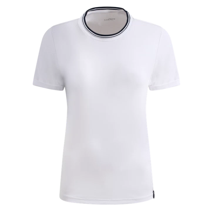 T-shirt réalisé en doux jersey stretch léger Sunblock et Dry-Matic. Idéal pour la saison chaude, ce modele seche rapidement et est muni d’un efficace traitement anti-UV pour protéger des rayons solaires les plus nocifs. Le bas de manche est agrémenté d’un bord retroussé, tandis que le col côtelé présente un relief assorti légerement brillant. Les profils contrastants sur l’encolure évoquent l’étiquette griffée appliquée sur le bas.