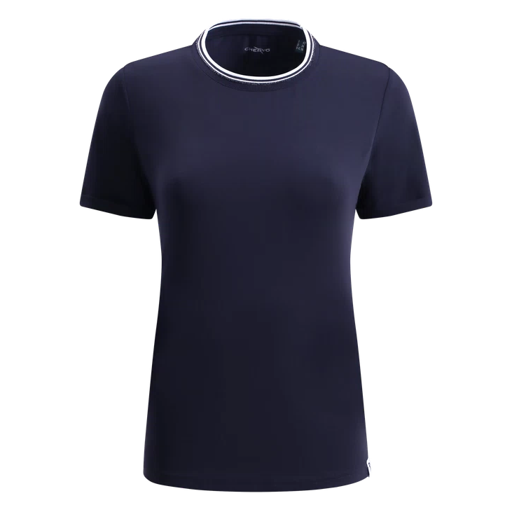 T-shirt réalisé en doux jersey stretch léger Sunblock et Dry-Matic. Idéal pour la saison chaude, ce modele seche rapidement et est muni d’un efficace traitement anti-UV pour protéger des rayons solaires les plus nocifs. Le bas de manche est agrémenté d’un bord retroussé, tandis que le col côtelé présente un relief assorti légerement brillant. Les profils contrastants sur l’encolure évoquent l’étiquette griffée appliquée sur le bas.