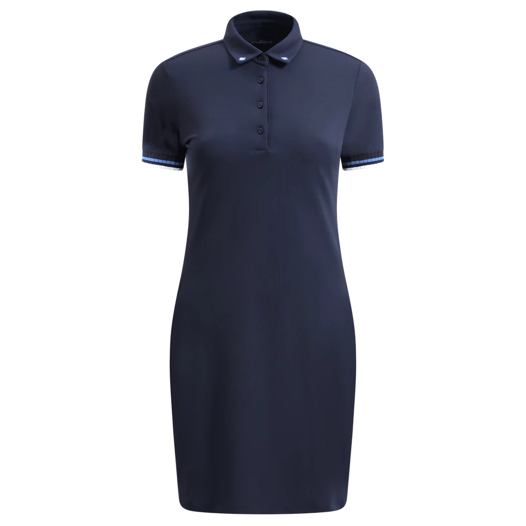 Confectionnée en piqué 100 % polyamide traité Dry-Matic® et Sunblock®, la robe femme VIVIANA offre une respirabilité, une fraîcheur et un temps de séchage exceptionnels, idéale a porter toute l'année. Ornée de deux petits trefles a quatre feuilles brodés sur le col pour une touche porte-bonheur, cette robe est dotée d'emmanchures a larges côtes et rayures bicolores pour plus de style et de confort. Que ce soit pour des occasions décontractées ou semi-formelles, son tissu léger et résistant assure un confort optimal tout au long de la journée.